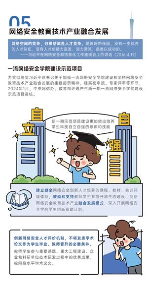“举办网络安全宣传周、提升全国网络安全意识和技能,是国家网络安全工作的重要内容,国家网络安全工作要坚持网络安全为人民、网络安全靠人民,保障个人信息安全,维护公民在网络空间的合法权益。要坚持网络安全教育、技术、产业融合发展,形成人才培养、技术创新、产业发展的良性生态。要坚持促进发展和依法管理相统一,既大力培育人工智能、物联网、下一代通信网络等新技术新应用,又积极利用法律规范和标准规范引导新技术应用。要坚持安全可控和开放创新并重,立足于开放环境维护网络安全,加强国际交流合作,提升广大人民群众在网络空间的获得感、幸福感、安全感。”