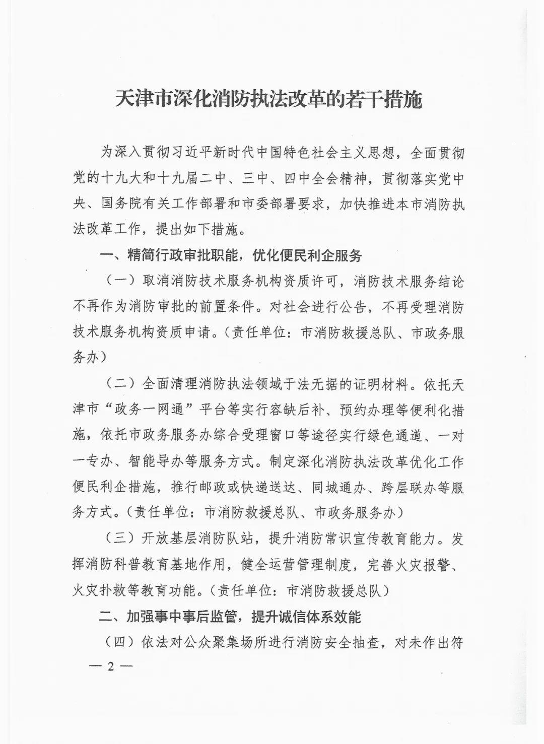 | 5方面29项措施《天津市深化消防执法改革的若干措施》印发 |