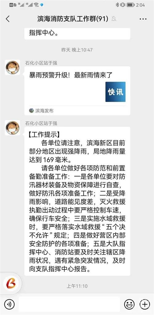 三是强化应急救援。强降雨期间,消防支队共接处警41起,主要集中在新港、杭州道、胡家园等区域,主要以排水、车辆救助为主。其中排水排涝32起,消防救援队伍连续奋战7小时,累计转移群众4人,救助车辆6起,提示车辆改道32辆,排水330吨。