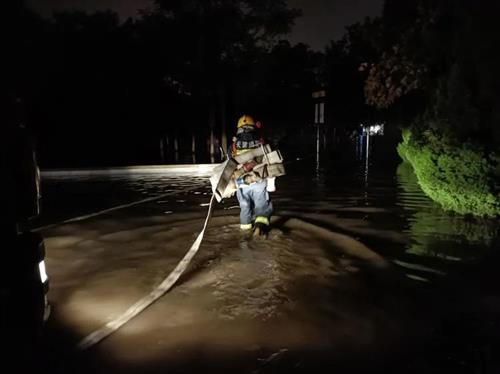二是强化前置备勤。选取10处最不利低洼点位进行力量前置,预置10部消防车、53名指战员在前置点位死盯死守,共携带舟艇6艘,排涝装备32台,救援装备366件,确保遇有突发事故能够快速、高效处置。