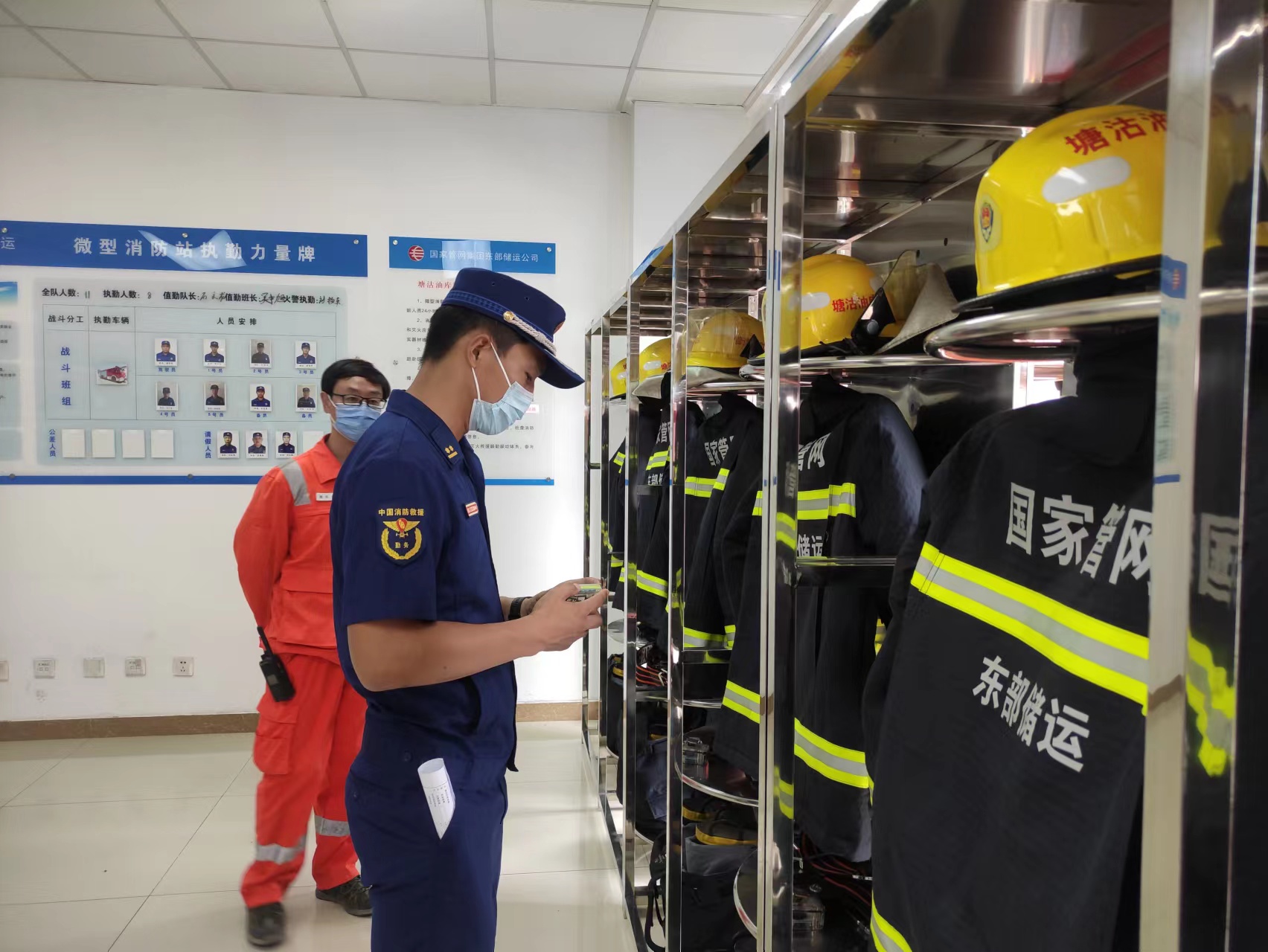 无私奉献,相濡以沫保安康。鲜衣怒马少年时,不负韶华行且知。戴继业在工作之余总能让自己过的充实且有意义,帮扶困难户、社区服务、消防宣传、走访排查他什么都干,一次次的社会实践,让他渐渐地变成了辖区群众眼中的“红人”。就这样,他一直在消防事业中奉献着、收获着,唯一的遗憾就是对家人的亏欠。“蓝衣”和“白甲”的故事总是为人津津乐道,而戴继业的妻子正是一名护士。这样的职业,注定是聚少离多,但他们深知作为一名消防员与医务人员的职责所在,两人时常相互鼓励、相互包容。突如其来的疫情,让彼此的工作压力变得更大,见面的时间更少了,可一次不期而遇,却成了两人永恒的记忆。那个夏天,本应休假的戴继业连夜出警归队,当在看到周边社区正在准备做全员核酸检测时,他毅然决定投入到志愿者队伍中帮助维护现场秩序。而那里的一道白色倩影让他定了神,他看到接连奋战两天的妻子正在穿着防护服,那略显狼狈的动作突然让他心疼起来。怕打扰到妻子的工作,他并没有去打招呼,默默的关注着她,直到数个小时的工作结束。当妻子卸下“伪装”后,戴继业突然出现在她的面前道:“辛苦了,我们回家吧。”妻子晃神间眼泪夺眶而出,紧紧扑在他的怀中,两人相拥无言。谁都想不到,三个月来看到彼此的第一次面,竟是如此浪漫。相知相守数年,她依然是他的白衣天使,他也仍是她的烈火英雄。