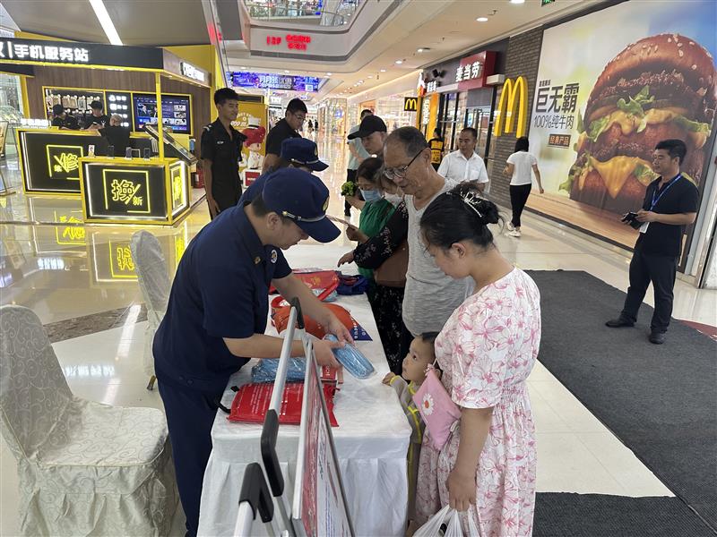 活动中,消防宣传人员利用宣传车载LED屏幕循环播放消防公益广告、火灾警示教育片,为过往群众敲响防火的警钟。期间,宣传人员在人员集中的进出口、购物区、顾客休息区等场所搭设了宣传咨询台,向群众发放消防宣传资料、普及防火常识及消防法律法规;面对面讲解安全用火、用电、用气注意事项,如何预防电器、易燃易爆物品火灾,以及发生火灾后如何正确报警和做好火场逃生自救、互救;提醒广大群众自觉抵制电动自行车违规停放、充电行为,不随意占用消防车道,严防各种火灾事故的发生。此外,宣传人员还走进各个店铺提醒商场员工要自觉清查身边隐患,及时清理店铺内可燃物,确保安全环境,远离火灾。