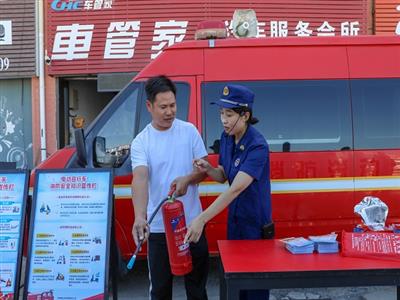 培训过程中,宣传人员将流动宣传车停放在商铺聚集区、人员流动频繁等主要路口,利用消防展板、消防安全知识手册,采取实操为主、理论学习为辅的培训方式,从消防安全责任落实、火灾的危害性、日常防火巡查重点、报火警、用火用电安全须知、消防设施器材维护保养、人员疏散等方面进行细致讲解。同时,为确保活动效果,组织各单位开展了“实战”演练,让在场人员从理论到实践身临其境地学习消防知识,通过手把手教学的方式,现场指导大家常见灭火器材的正确使用方法及注意事项,切实提升参训人员的熟练掌握程度及扑救初期火灾的能力。