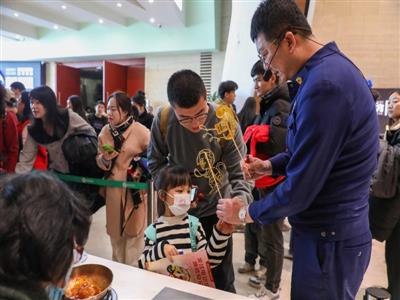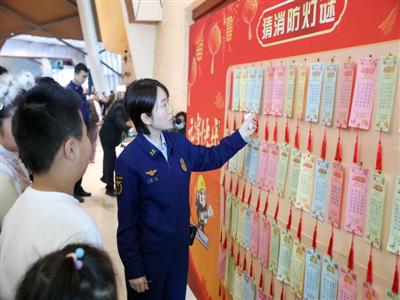 活动现场设置了多个宣传区,在糖画体验区,非遗传承人现场熬制糖浆,以精湛技艺绘制各类消防主题糖画作品,如消防员救火英姿、消防车、消火栓、灭火器等。非遗糖画与消防宣传创新融合,极大限度地激发了现场群众对学习消防知识的兴趣。宣传人员还精心设计了100道融合消防安全常识谜题,吸引了现场游客的浓厚兴趣。在猜谜活动区,现场游客有的抬头索思,有的俯首比划,集思广益、争相参与。宣传人员在引导群众猜谜题的同时,根据谜面拓展讲解消防知识,确保活动兼顾形式新颖与内涵丰富。活动中,答对谜题的游客收获了消防主题“糖画”,扫码关注支队媒体公众号的游客领取了各式消防文创小礼品,现场宣传氛围浓厚热烈。