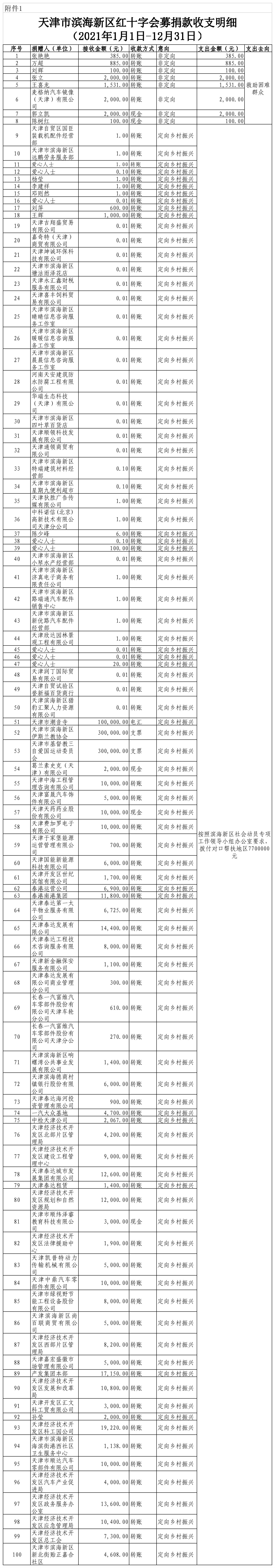 天津市滨海新区红十字会捐赠物资收支明细(2021.1.1-2021.12.31)