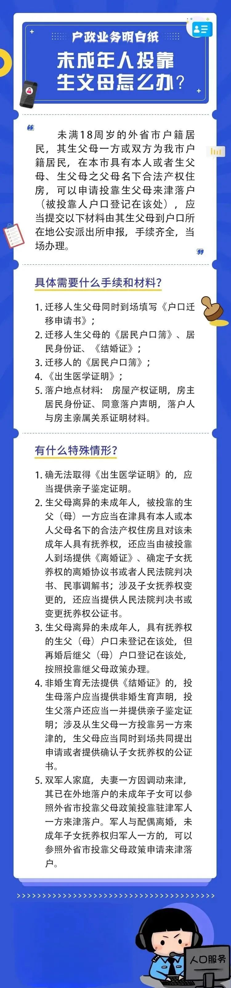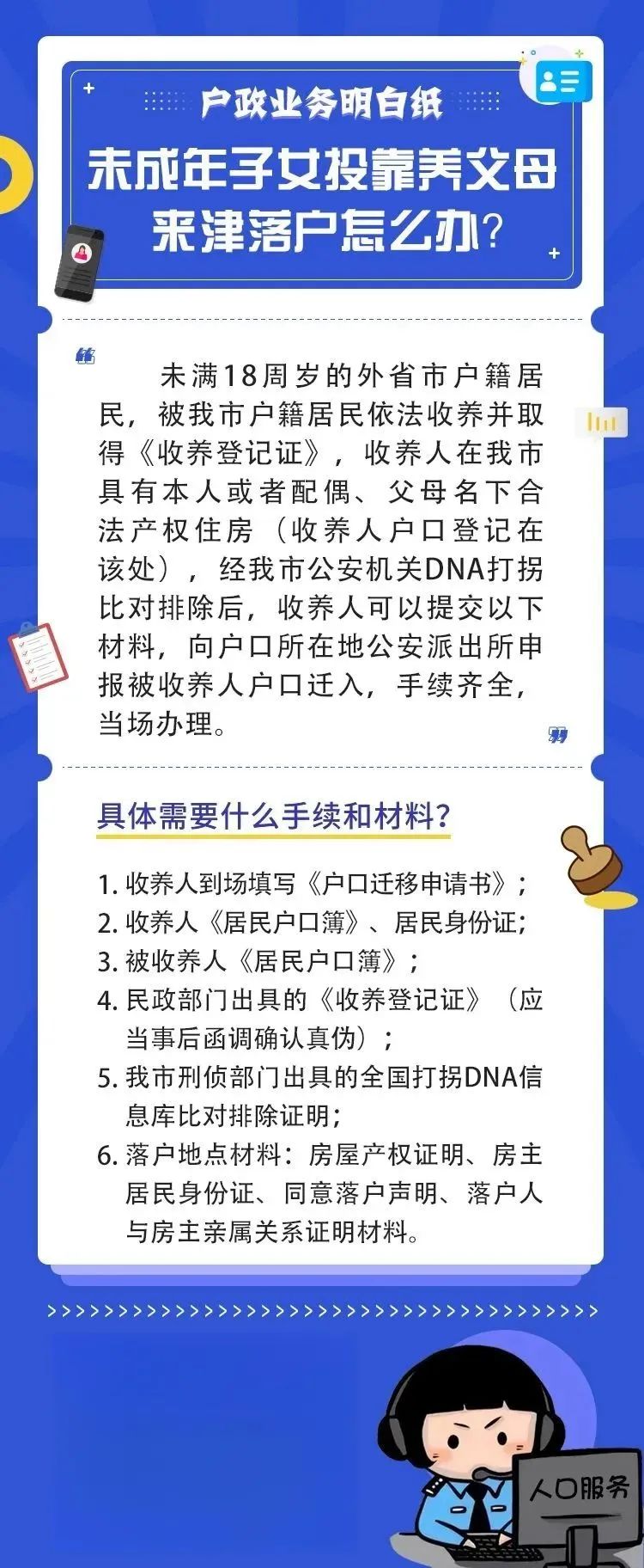 未成年子女投靠养父母来津落户怎么办?