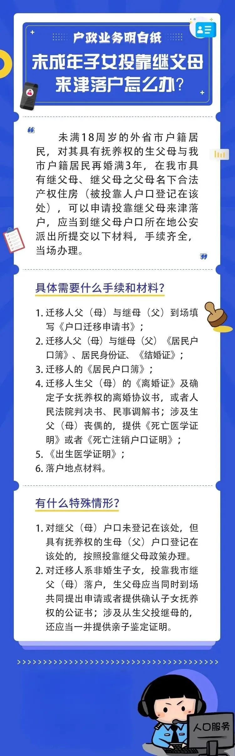 未成年子女投靠继父母来津落户怎么办?