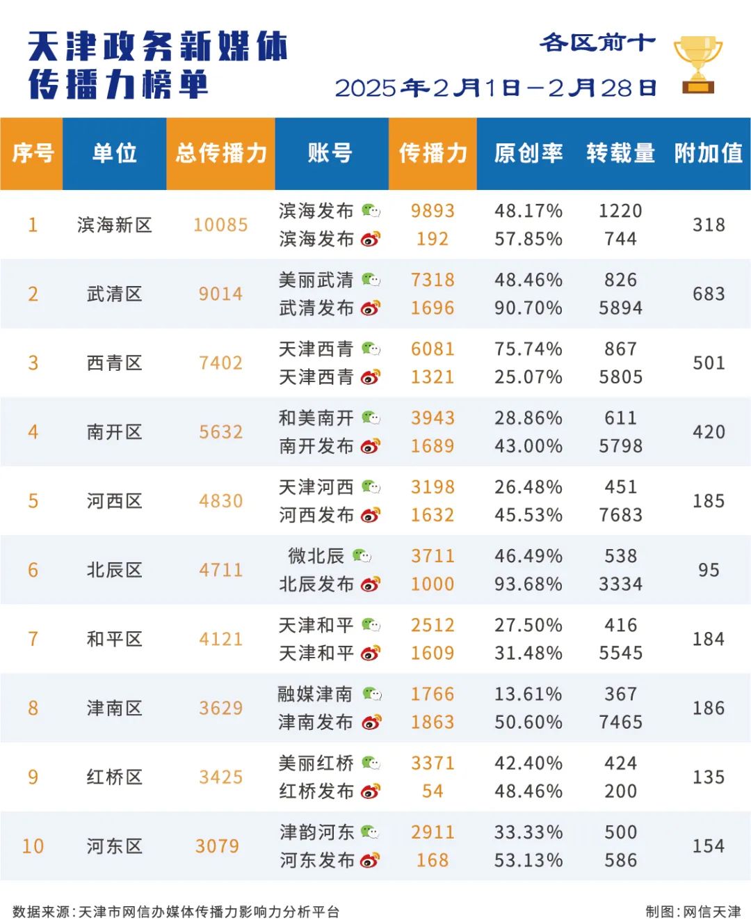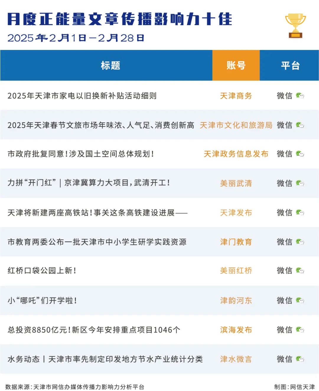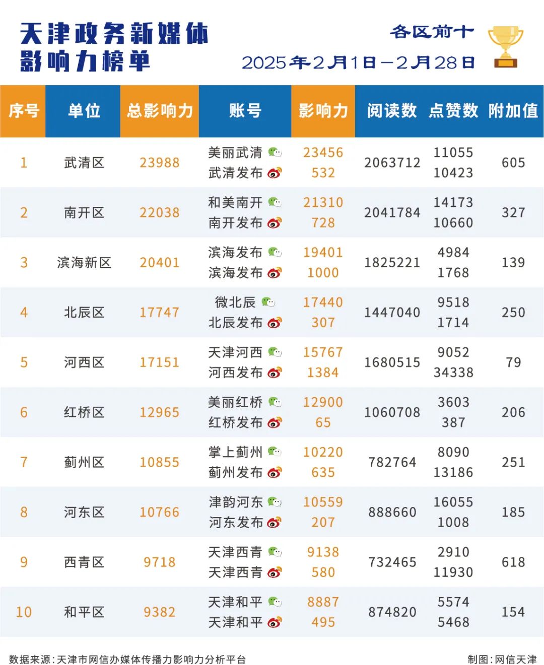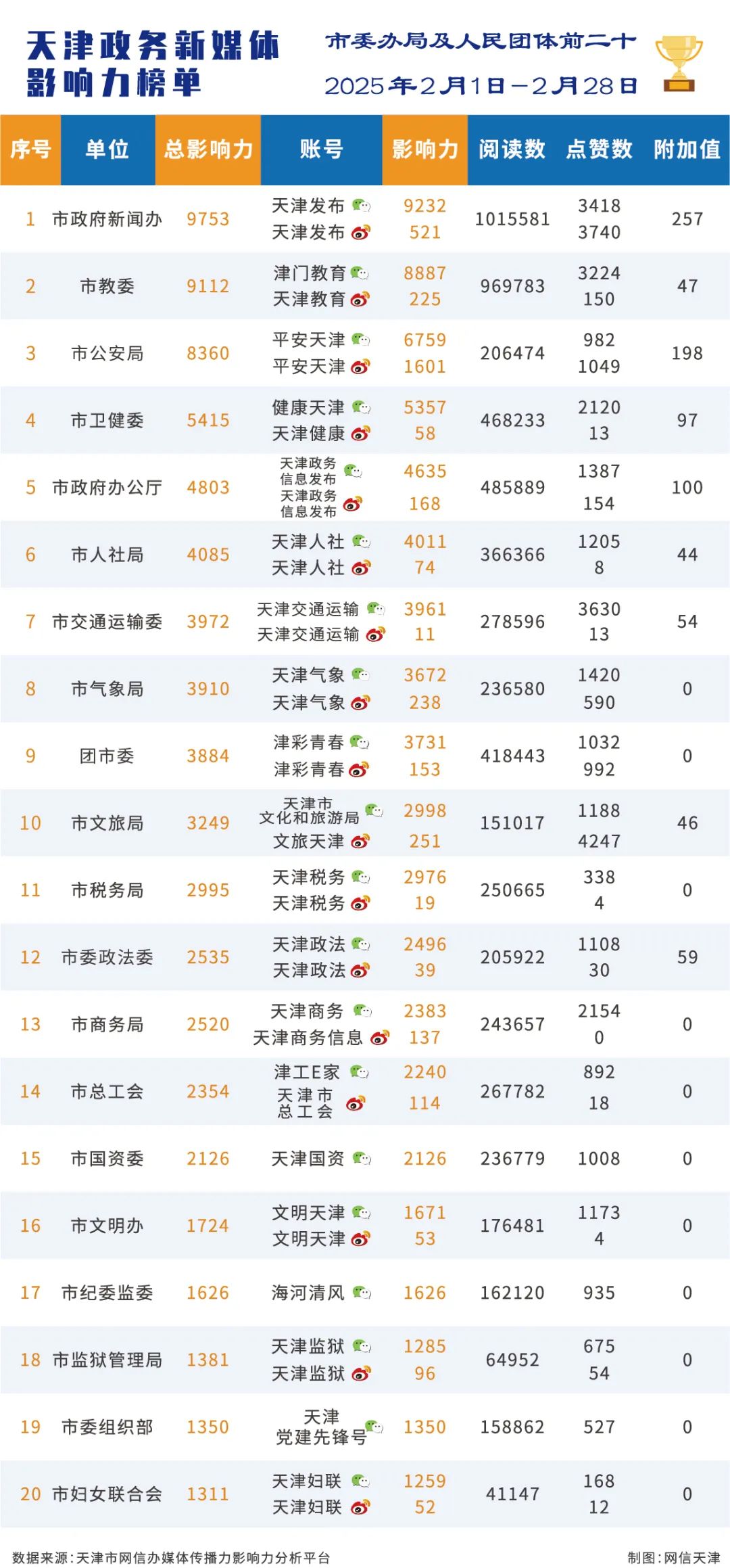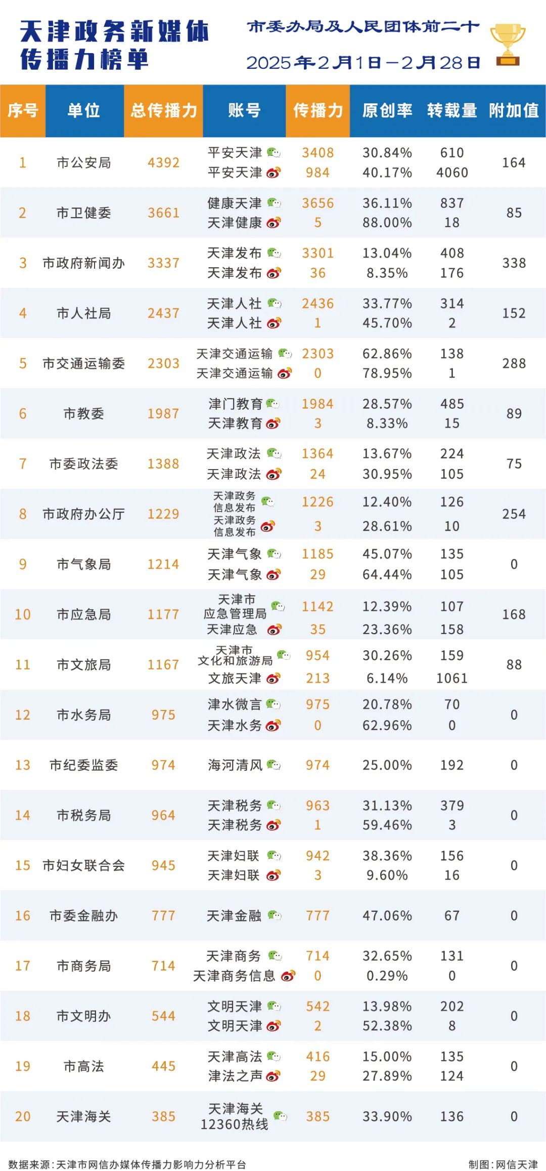 | 2025年2月份天津政务新媒体传播力影响力榜单 |
