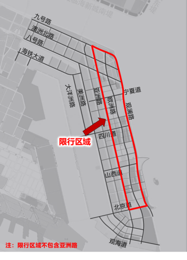 亚洲路以西道路(含亚洲路)货车均可通行。