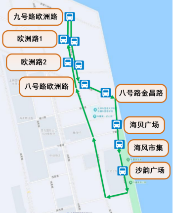 东疆接驳专线:前往亲海景区的游客,可以在欧洲路(九号路-八号路)、八号路(欧洲路-观澜路)路段单排顺行停放,并乘坐东疆接驳专线(免费)前往亲海景区。