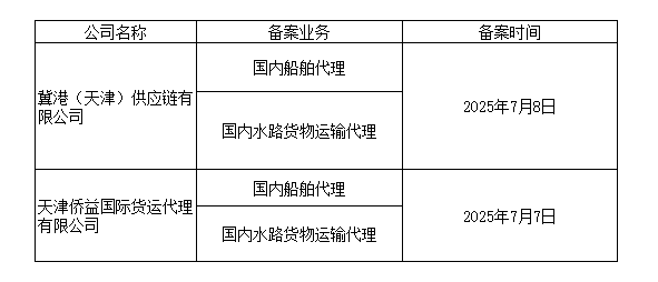 根据《国内水路运输辅助业管理规定》对以下从事船舶代理、水路货物运输代理业务的企业予以备案。