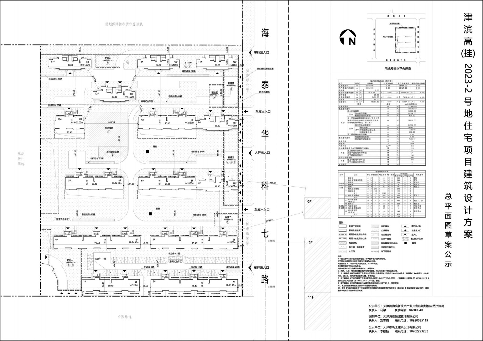 依据《中华人民共和国城乡规划法》和住建部《关于城乡规划公开公示的规定》的有关要求,现将天津海泰恒诚置地有限公司津滨高(挂)2023-2号地住宅项目建筑设计方案总平面图草案进行公示,公示时间共7个工作日,详情请查看附件。
