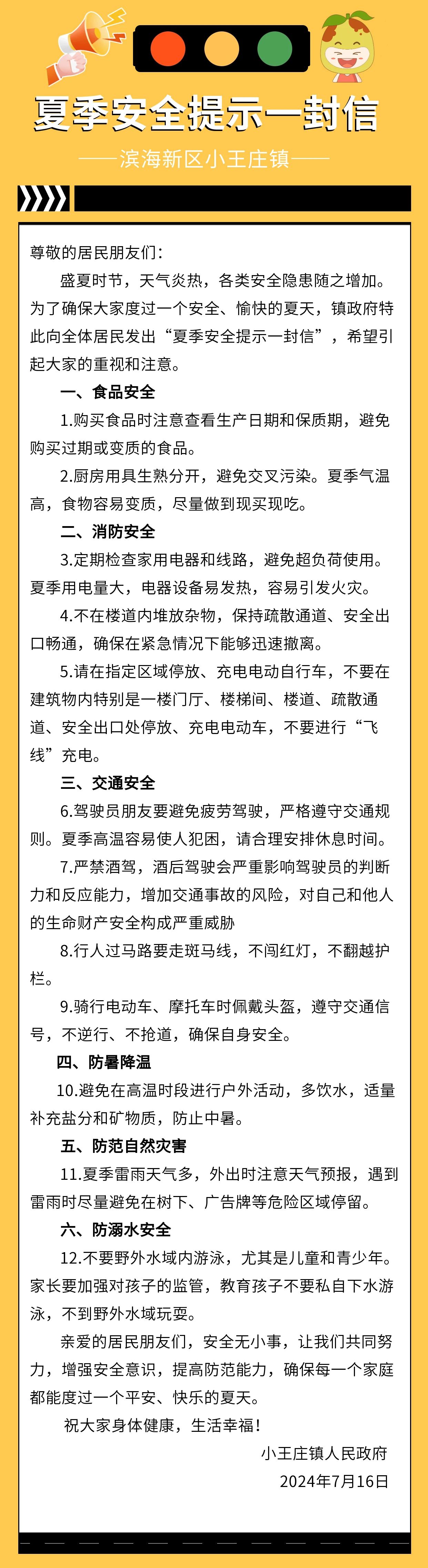 夏季安全提示一封信