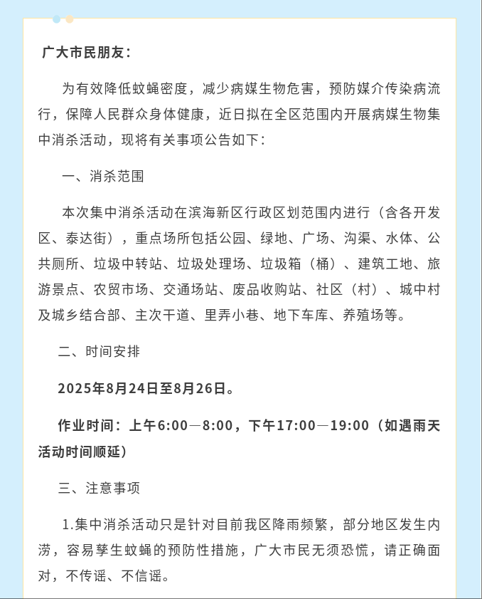 【转发扩散】关于在全区开展蚊蝇集中消杀活动的通告