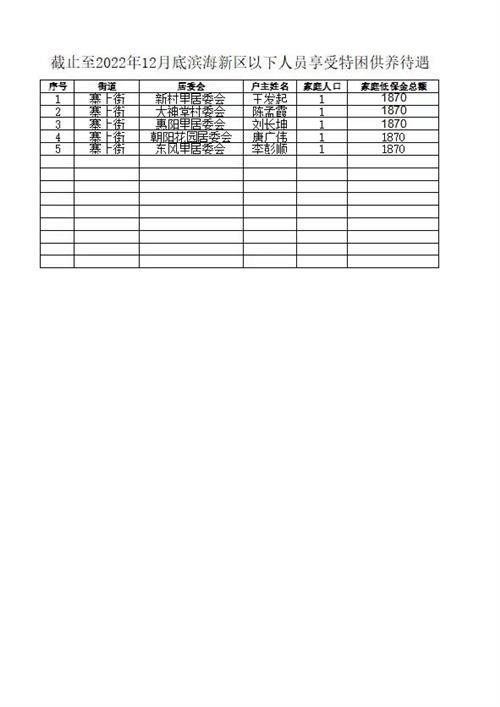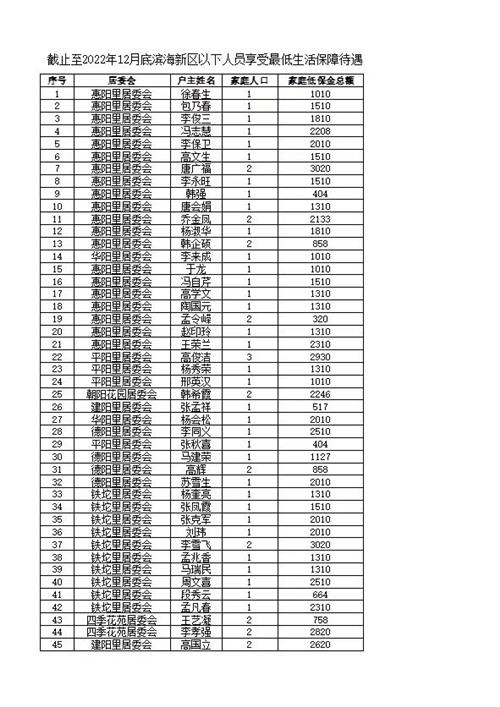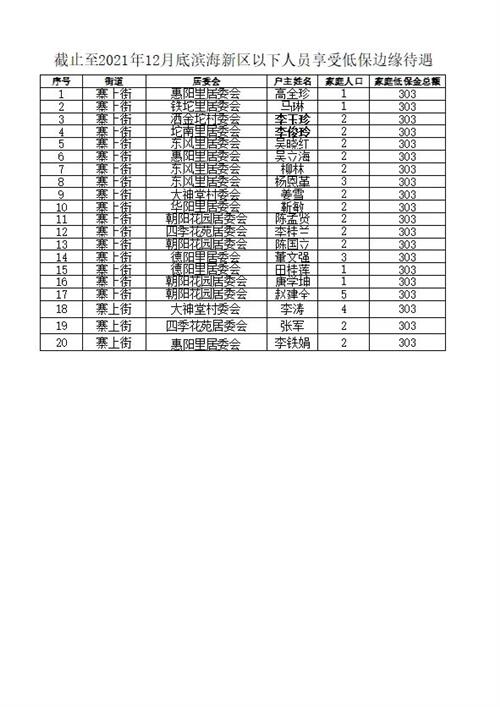 现将寨上街2022年12月最低生活保障信息公示如下: