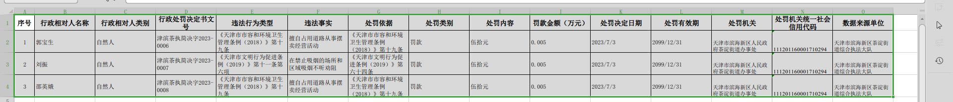 茶淀街2023年7月份行政处罚公示信息