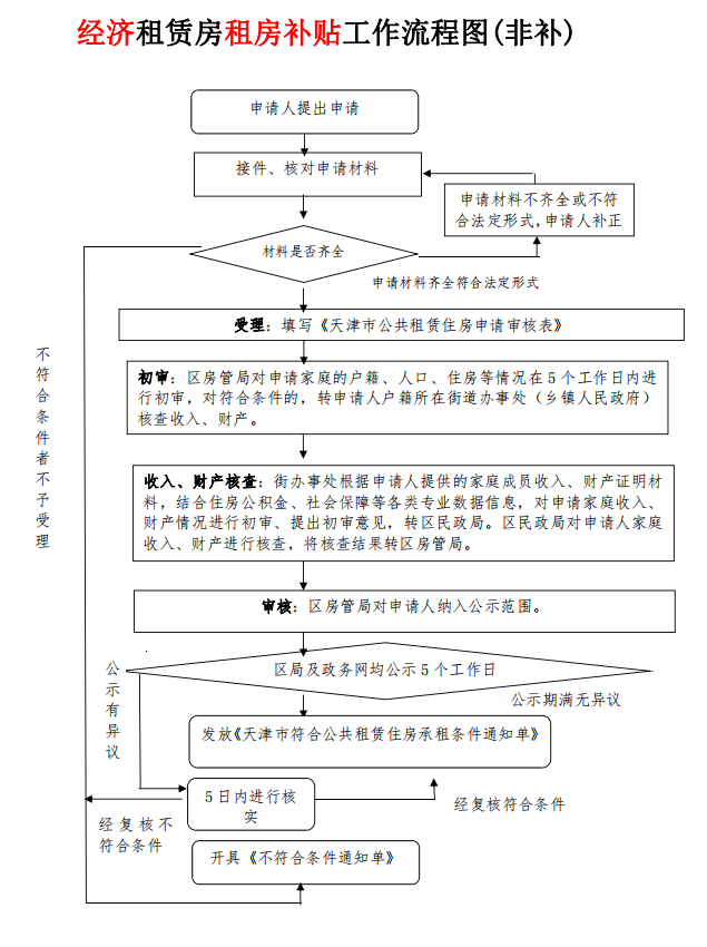 海滨街经济租赁房租房补贴申请受理流程图