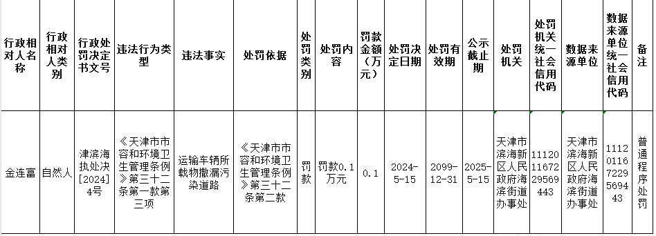 海滨街2024年5月行政处罚