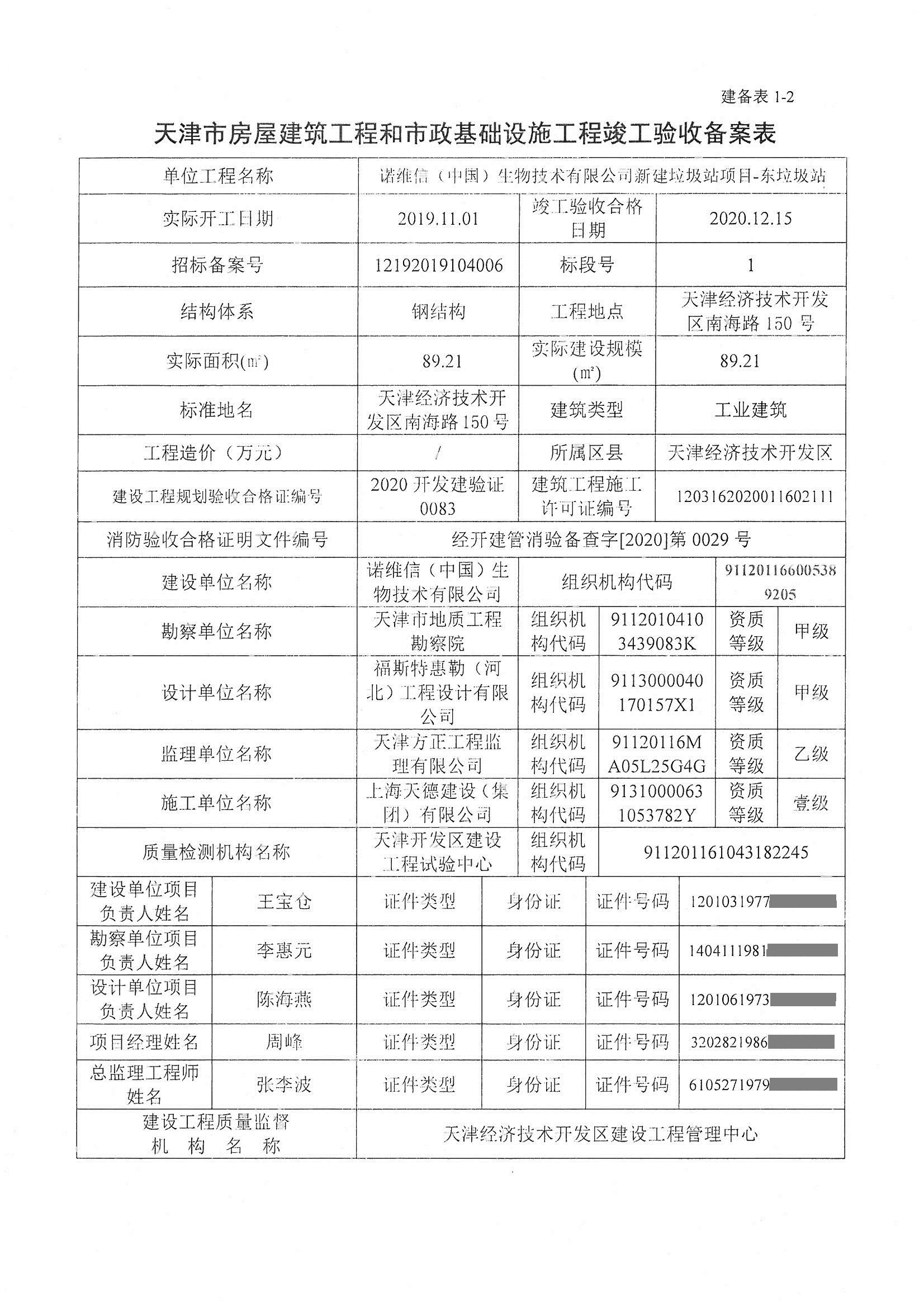 诺维信(中国)生物技术有限公司新建垃圾站项目-东垃圾站竣工验收备案