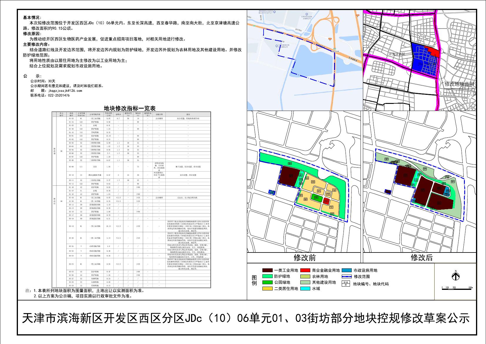 天津市滨海新区开发区西区分区JDc(10)06单元01、03街坊部分地块控规修改草案公示