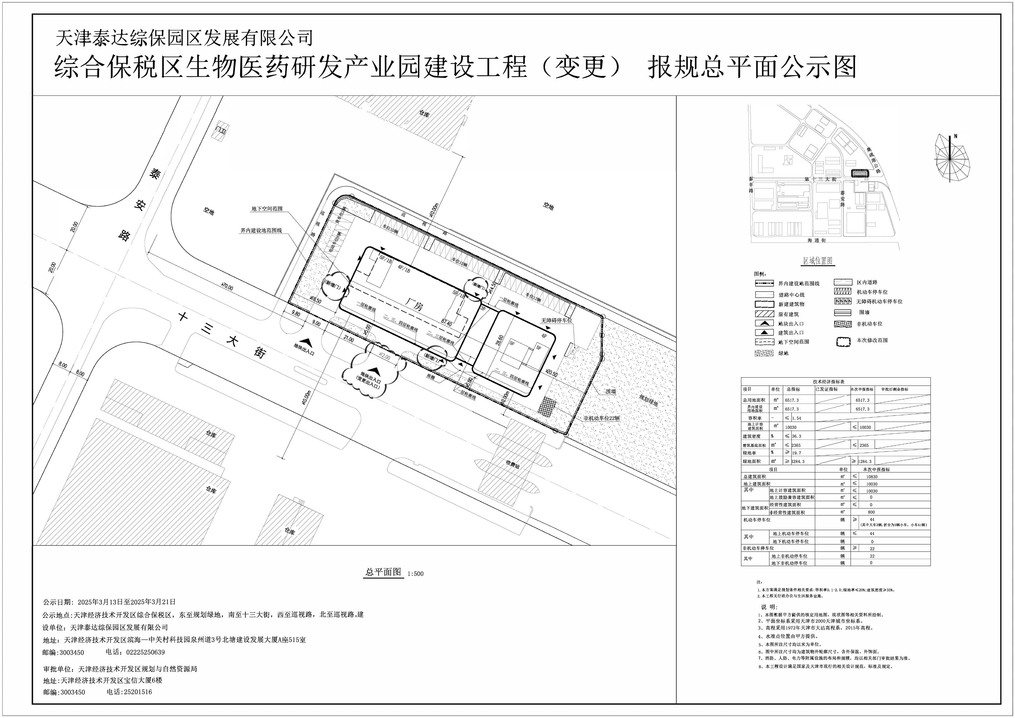 天津泰达综保园区发展有限公司综合保税区生物医药研发产业园建设工程(变更) 方案公示
