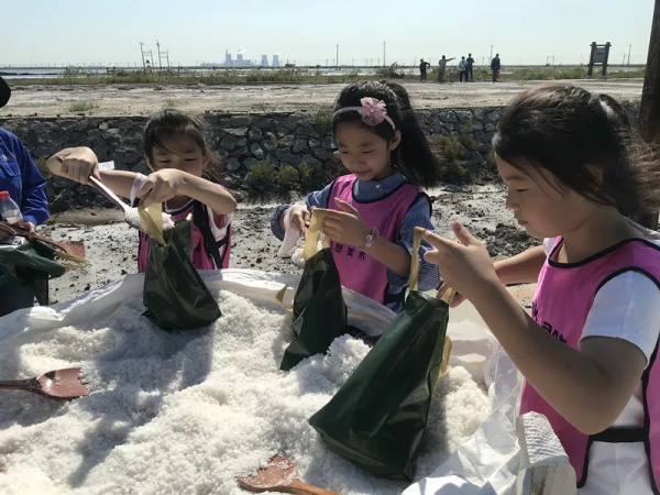 伴随着咸咸的海风,晶莹剔透的海盐映入眼帘。盐业风情游览区位于天津长芦汉沽盐场。汉沽盐场总面积96平方公里。游客可领略浩如烟海的万顷盐池,欣赏巍峨如山的集盐坨。天津长芦汉沽盐场有限责任公司党委书记、董事长李焕岭介绍,每个人每天都在吃盐,但是盐是怎么来的,很多人不知道。希望通过旅游,扩大汉沽盐场的知名度,传递盐渔文化。汉沽盐业始于后唐,衔于辽,盛于金,已有千余年历史。古时刮土淋卤,铁锅煎盐、木板刮盐,清初日晒制盐,后出现加工盐产品,生产工艺不断进步,积淀了深厚的盐文化。当今,现代化采盐、扒盐、输盐、洗盐和双臂机械堆盐等工艺流程已成为青少年的科普教育基地。