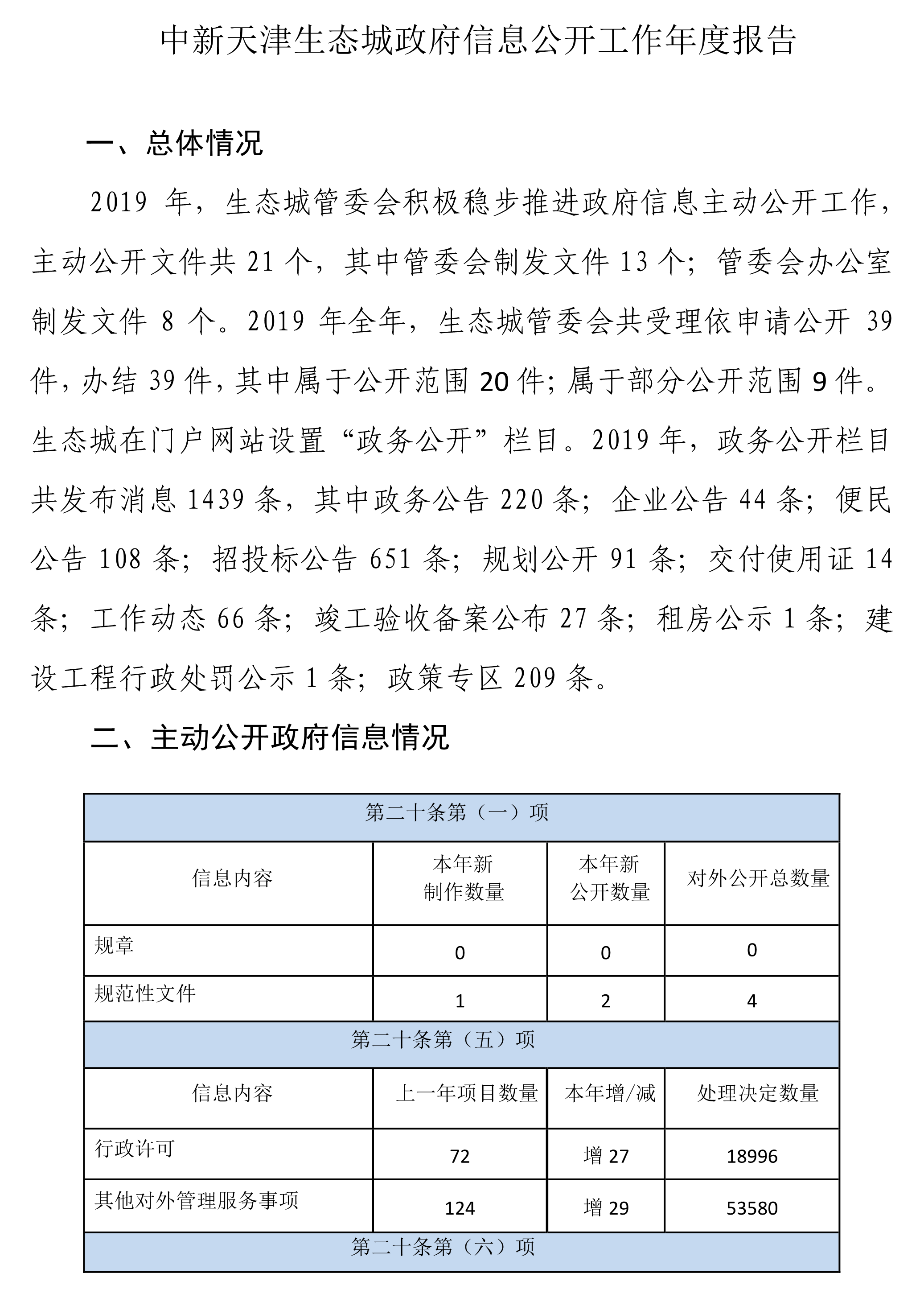 中新天津生态城政府信息公开工作年度报告(2019年度)