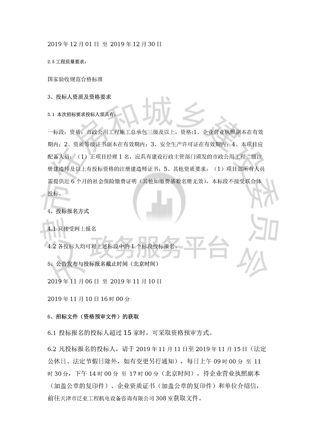 中新天津生态城临海新城2018年用户正式配套工程三期施工招标公告