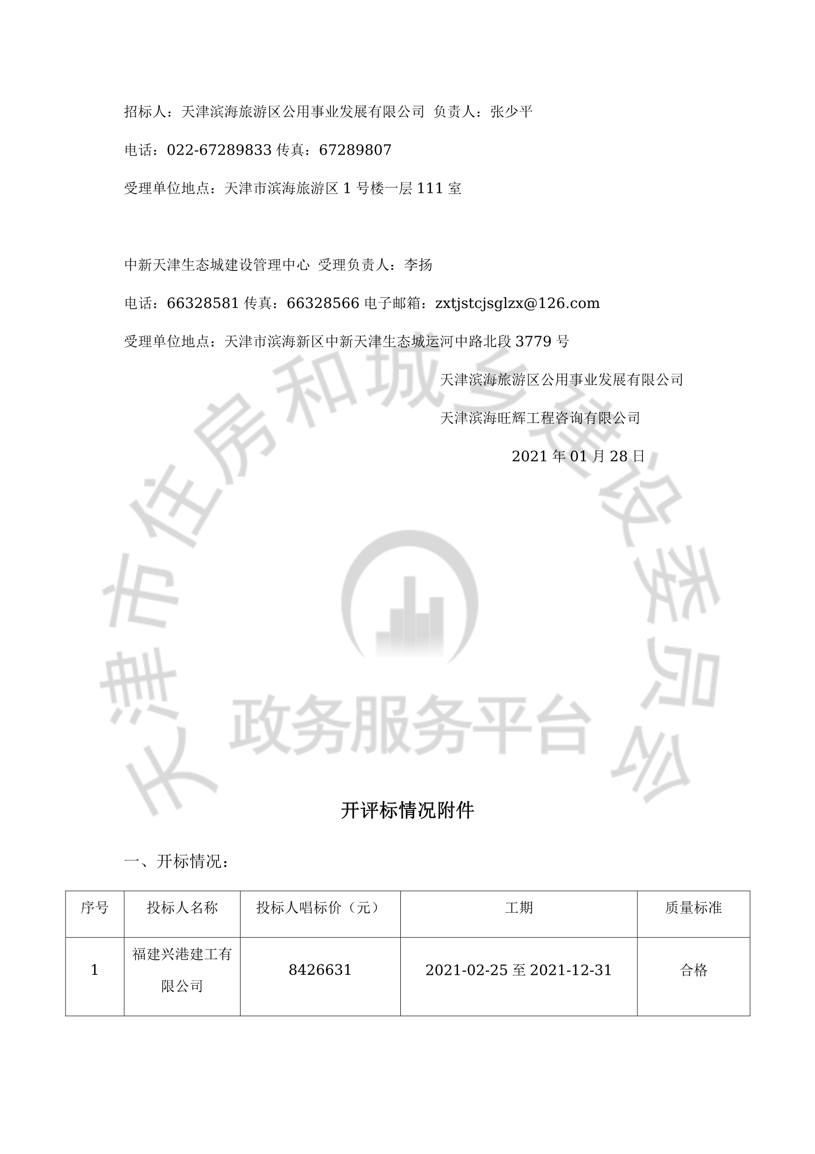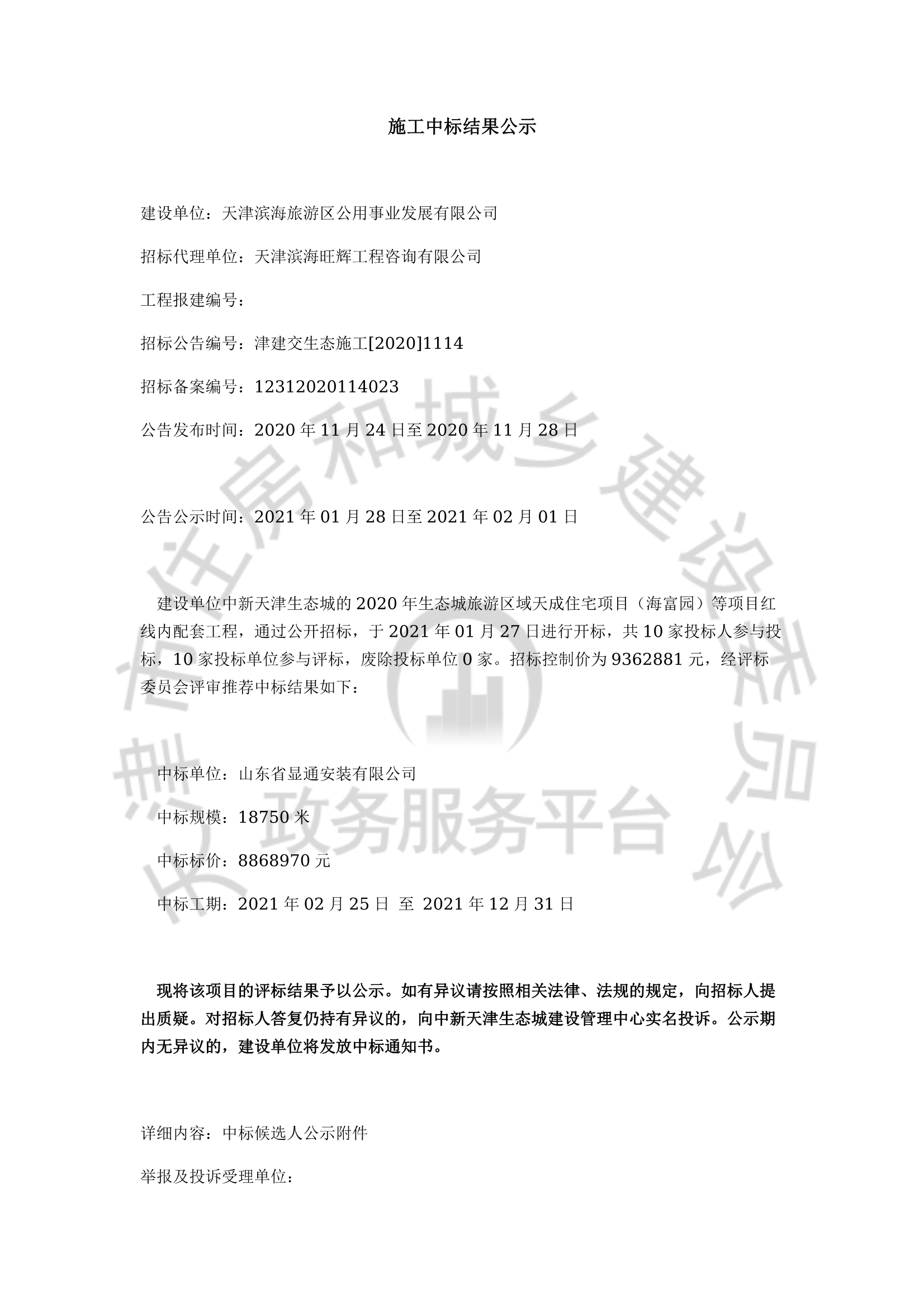 2020年生态城旅游区域天成住宅项目(海富园)等项目红线内配套工程中标公示