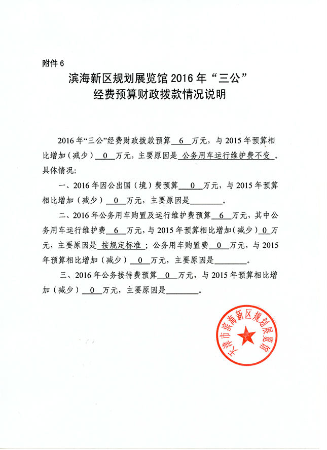 滨海规划展览馆2016年“三公”经费预算财政拨款情况说明