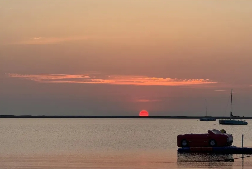 清晨的东疆湾沙滩,在晨曦微露中逐渐苏醒。一抹金色的日出在海平面缓缓升起,映照着海天之间的缆绳和码头的全景,勾勒出一幅壮丽的画卷。在这宁静的时刻,有人静静地伫立在海边,有人坐在秋千上慢慢摇晃,共同观赏这美妙的景象,享受着自然的馈赠。随着时间的推移,东疆湾从下午开始热闹起来。码头的缆绳在阳光下熠熠生辉,快艇和帆船在碧蓝的海面上劈波斩浪,带来阵阵海风的清爽。沙滩上,人们尽情享受着悠闲的时光,嬉戏玩耍,欢笑声回荡在海风中。