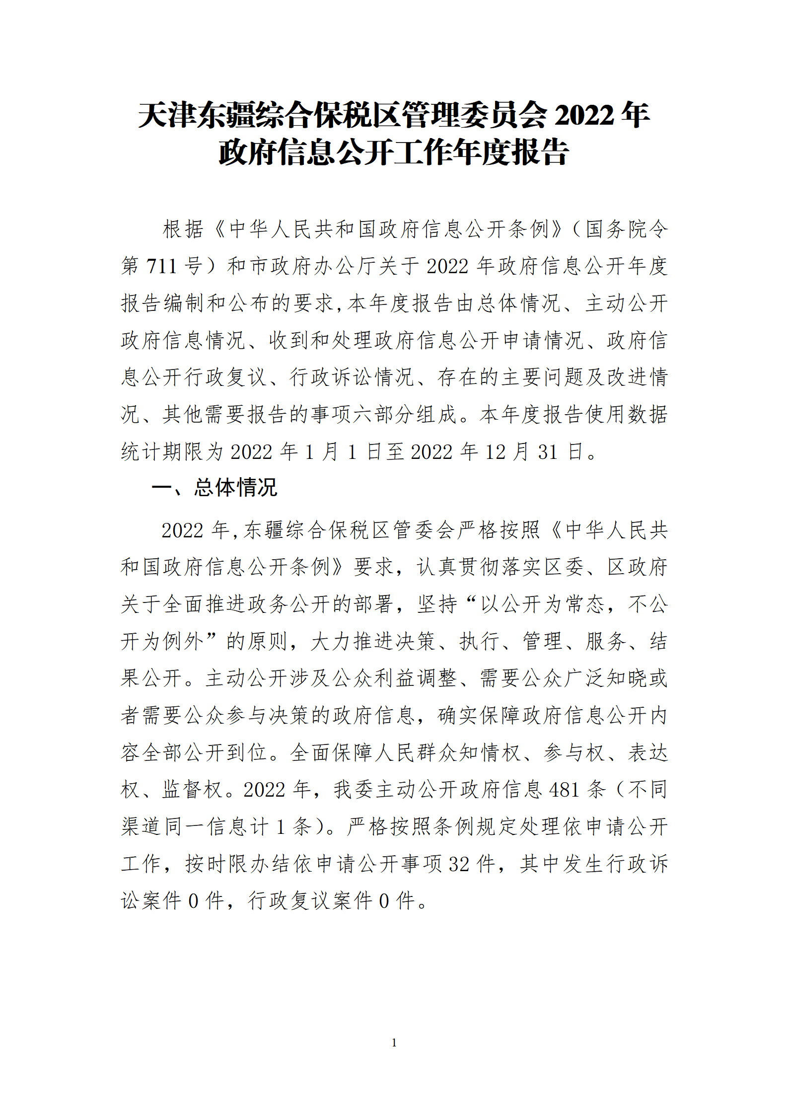 天津东疆综合保税区管理委员会2022年政府信息公开工作年度报告