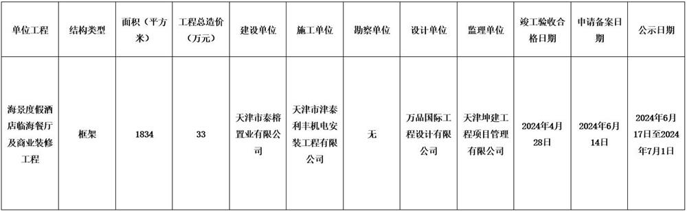 海景度假酒店临海餐厅及商业装修工程竣工验收备案公示