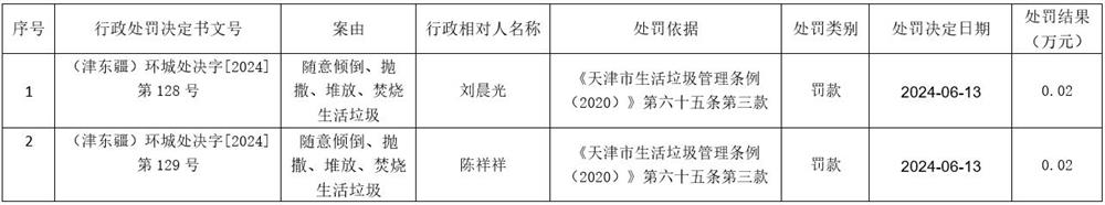 2024年6月13日城市管理行政处罚信息
