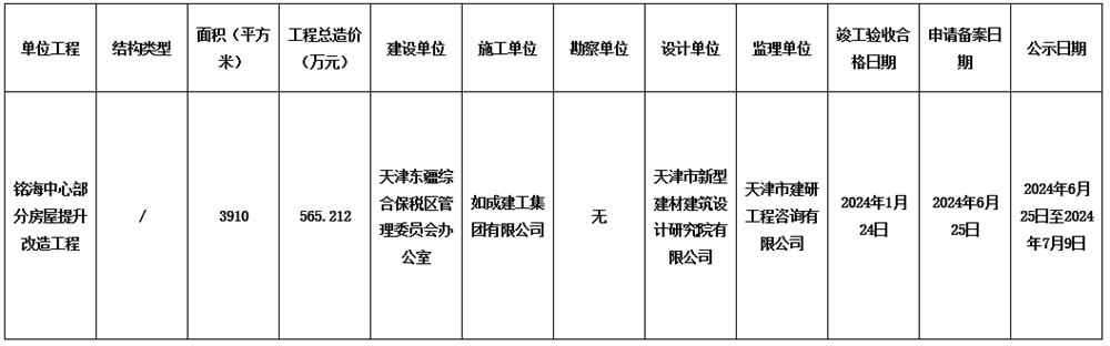 铭海中心部分房屋提升改造工程竣工验收备案公示