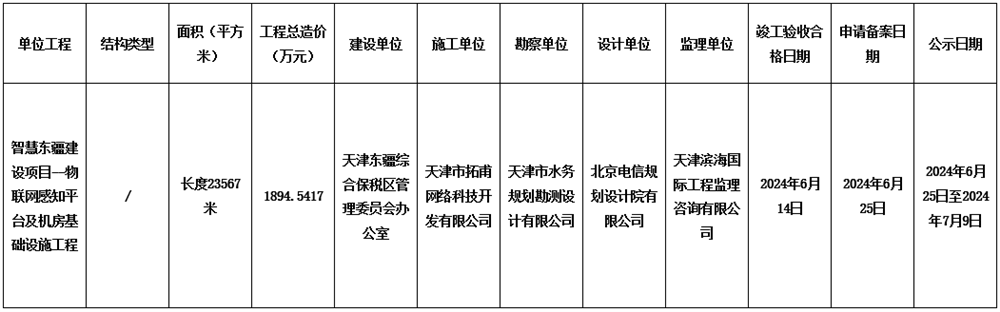 智慧东疆建设项目--物联网感知平台及机房基础设施工程竣工验收备案公示