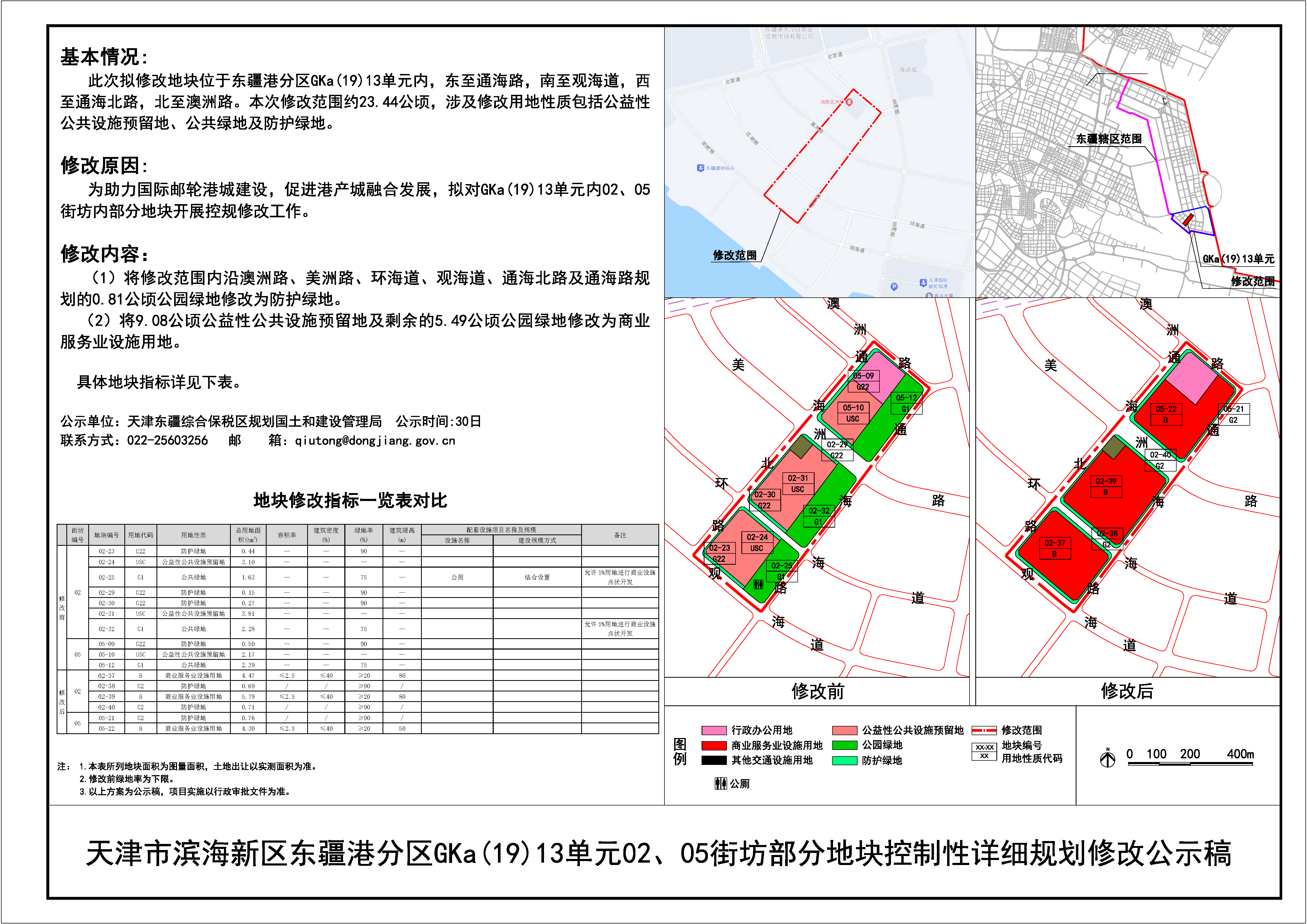 天津市滨海新区东疆港分区GKa(19)13单元02、05街坊部分地块控制性详细规划修改公示稿
