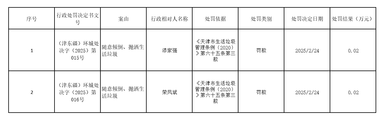 2025年2月24日城市管理行政处罚信息