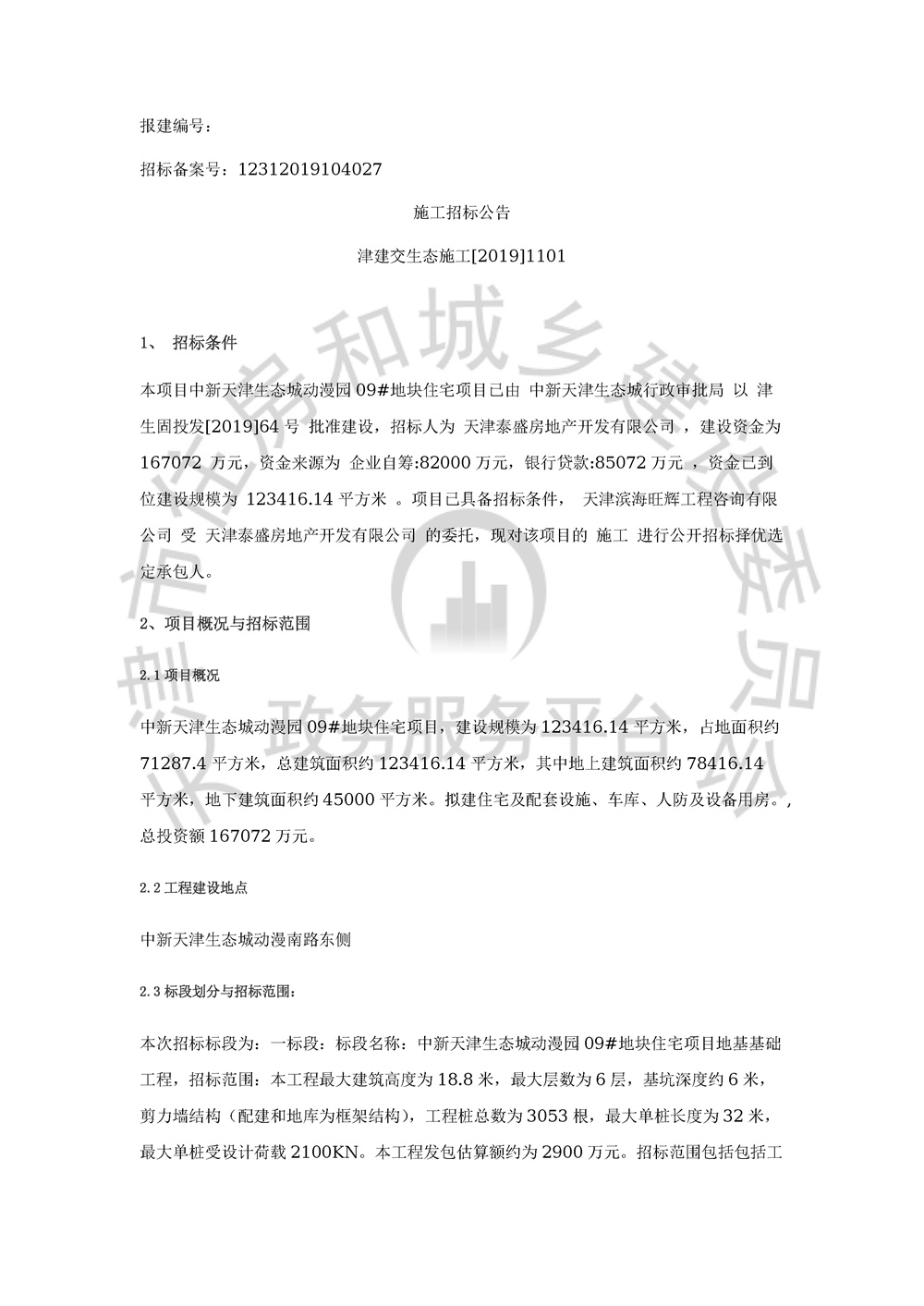 中新天津生态城动漫园09#地块住宅项目地基基础工程招标公告