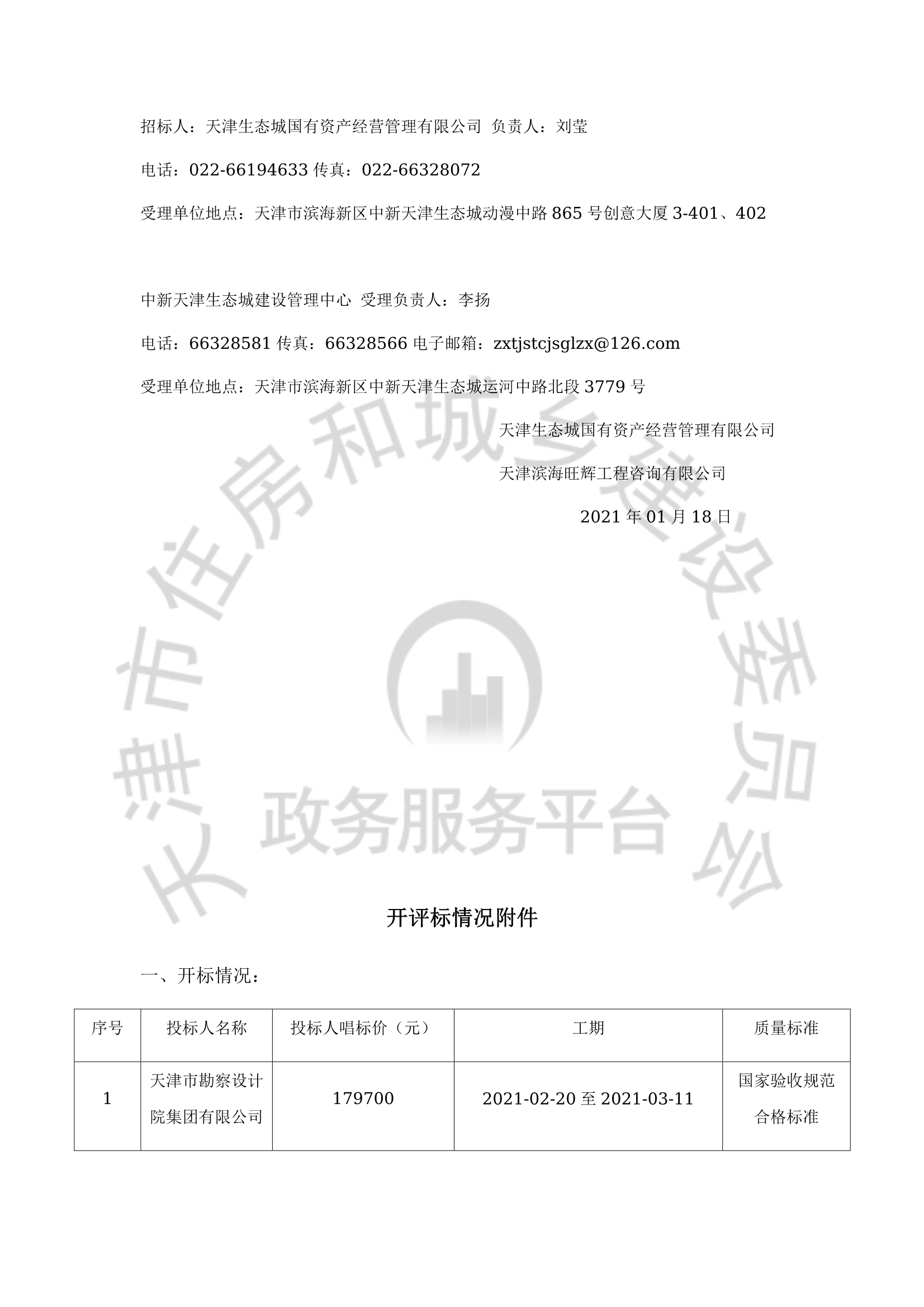 中新天津生态城安明路社区中心(公益性)项目勘察中标公示