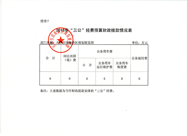 滨海规划展览馆2016年“三公”经费预算财政拨款情况说明