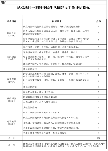 附件:1.试点地区城市一刻钟便民生活圈建设工作评价指标